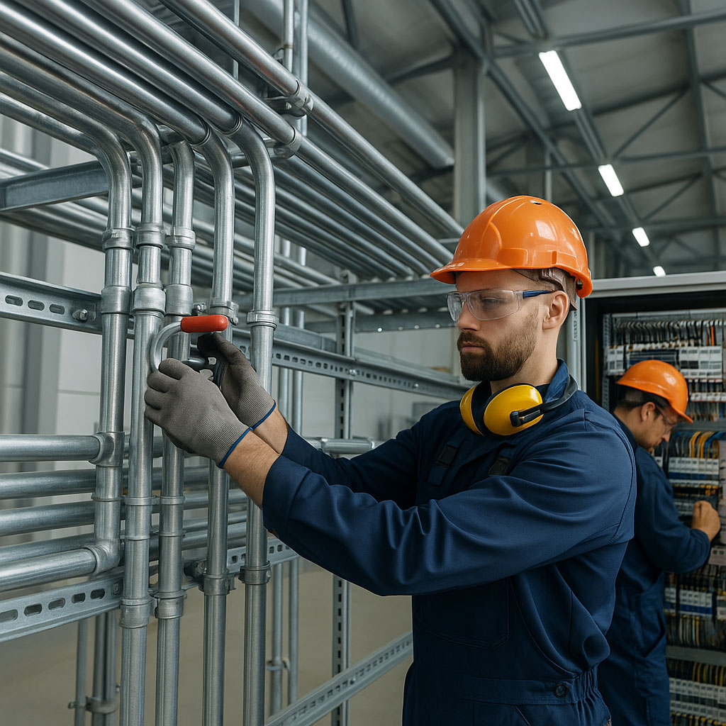 Todos os serviços seguem rigorosamente os critérios das normas PETROBRAS e internacionais, garantindo precisão dimensional e qualidade na instalação de tubulações elétricas.